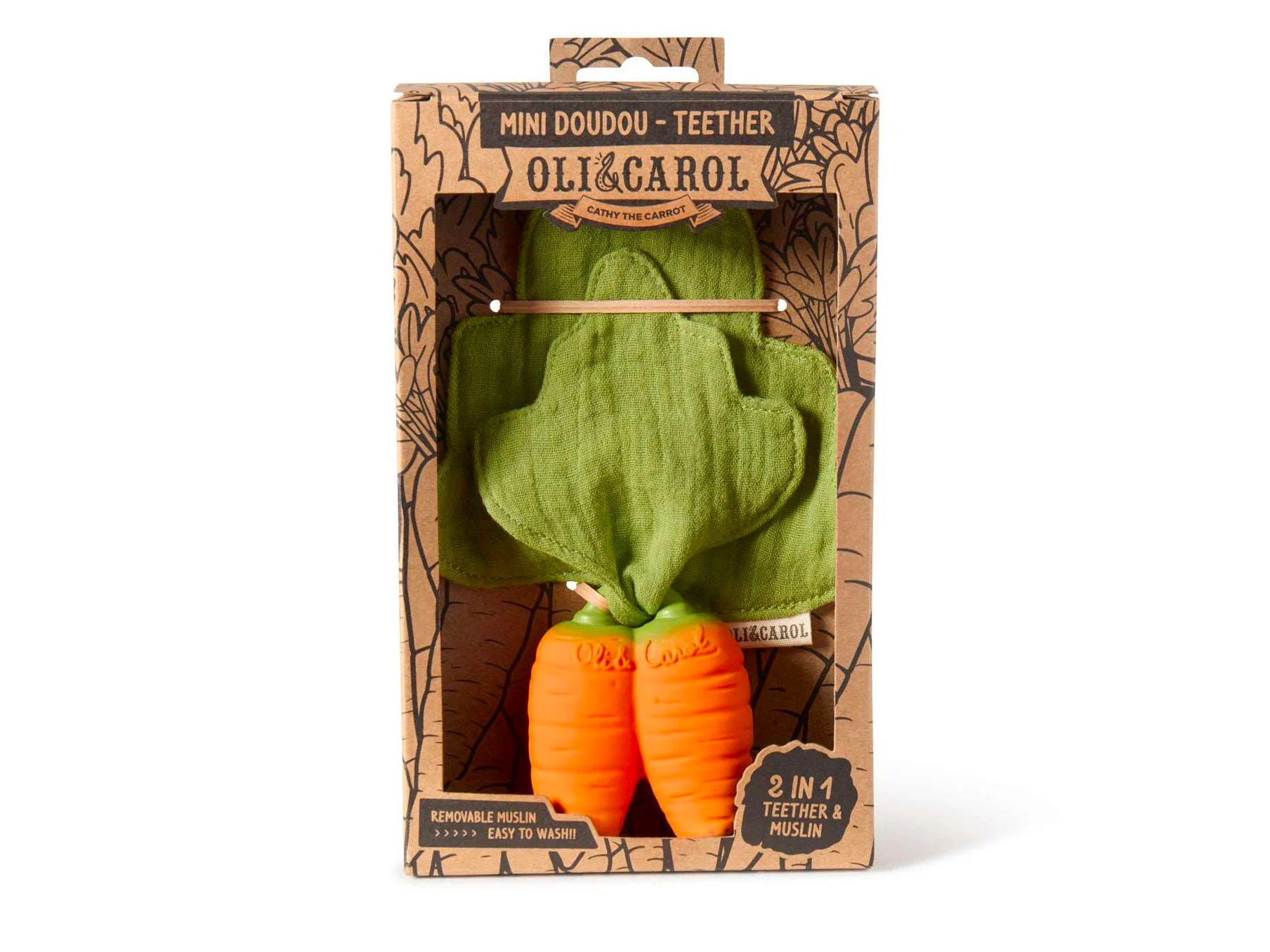 Cathy the Carrot est un adorable compagnon qui combine un doudou textile et un anneau de dentition naturel. PensĂ© pour le confort de bĂ©bĂ©, il lâaccompagne dans ses moments de repos comme dâĂ©veil.