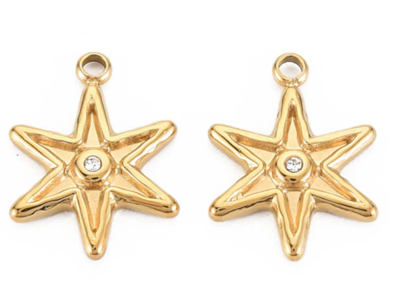 Pendentif étoile avec strass - doré à l'or fin 14K - 15 x 11 mm