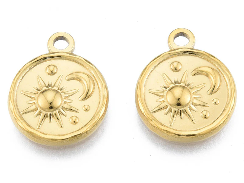 Apportez une touche de doré à votre tenue avec ce pendentif rond soleil et lune doré à l'or fin !