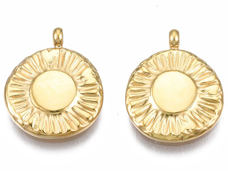 Apportez une touche de doré à votre tenue avec ce pendentif texturé rond doré à l'or fin !